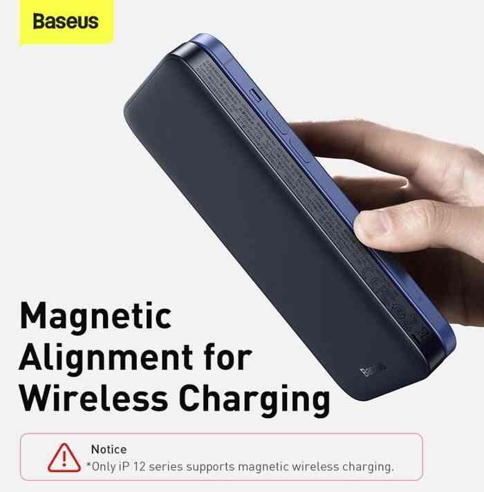- The magnetic attraction for charging: Automatic and precise alignment between a phone and the power bank with magnet Offer Instant charging. It is compatible With wireless charging Apple 12 Series.
