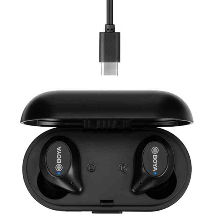 The BOYA BY-AP1 earbuds have a battery life of up to 6 hours on their own. The charging case comes with a built-in battery that provides an additional 16 hours of juice. When you're not listening to music, just place the earphones in the case seal it to store them, and begin the charging process. The charging case may be charged using the provided USB Type-C cable and an (optional) power adapter. If you wish to always keep an earbud charged and available, you can use only one earbud at a time. This function also allows you to listen to the audio while remaining aware of your surroundings.